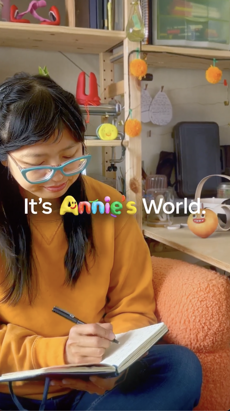 Annie Caption: Welcome to my world, its sweeter than a peach! 🍑 Catch me creating art with my @metaquest and don’t miss out on all my amazing new #claymation creatures!